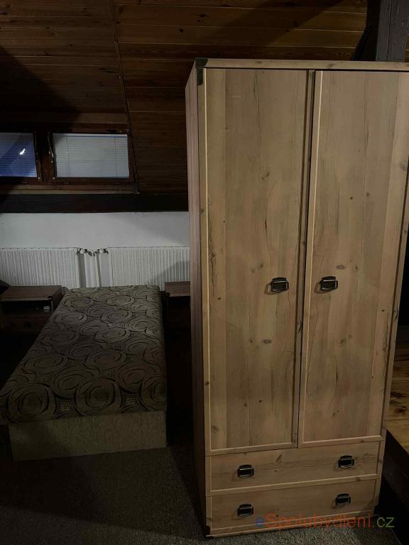 Popis pokoje:světlý pokoj | klidné místo | postel | skříň | stůl | židle | poličky |