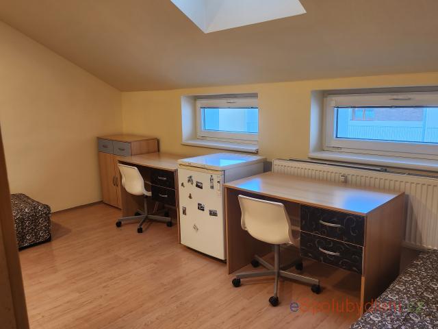 Nabízím čtyři lůžka ve dvou neprůchozích pokojích. Pokoje jsou vybaveny studentským nábytkem. K dispozici jsou 4 pracovní stoly s židlemi, šatní skříně, jídelní stůl, 4x postel, 2x lednička a 1x pračka. Kontakt: Anna