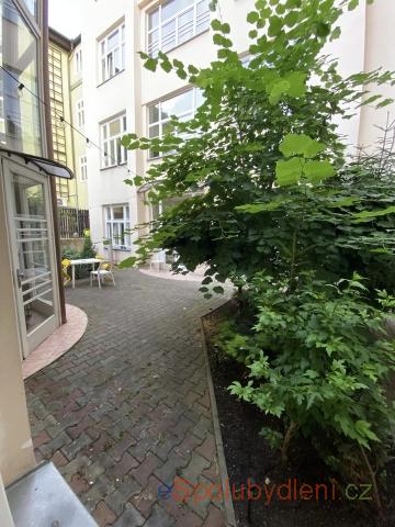 Byt je ve vnitrobloku, v létě je tu proto příjemné chladno a venku se navíc dá posedět a klidně i grilovat.