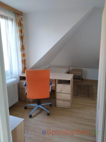 Nabízím dlouhodobě světlý neprůchozí uzamykatelný pokoj v 3+1. Byt je součástí RD, kde je další 2+1. Každý byt má své sociální zařízení. Nabízený pokoj je v 1. patře, kde je také velká vybavená kuchyň. V domě bydlí 4 mladí pracující lidé. Možnost uschování kola, parkování. V okolí příroda a sportovní yyžití. Centrum 20 min. Vratná kauce 12 000 Kč. Kontakt: Tereza